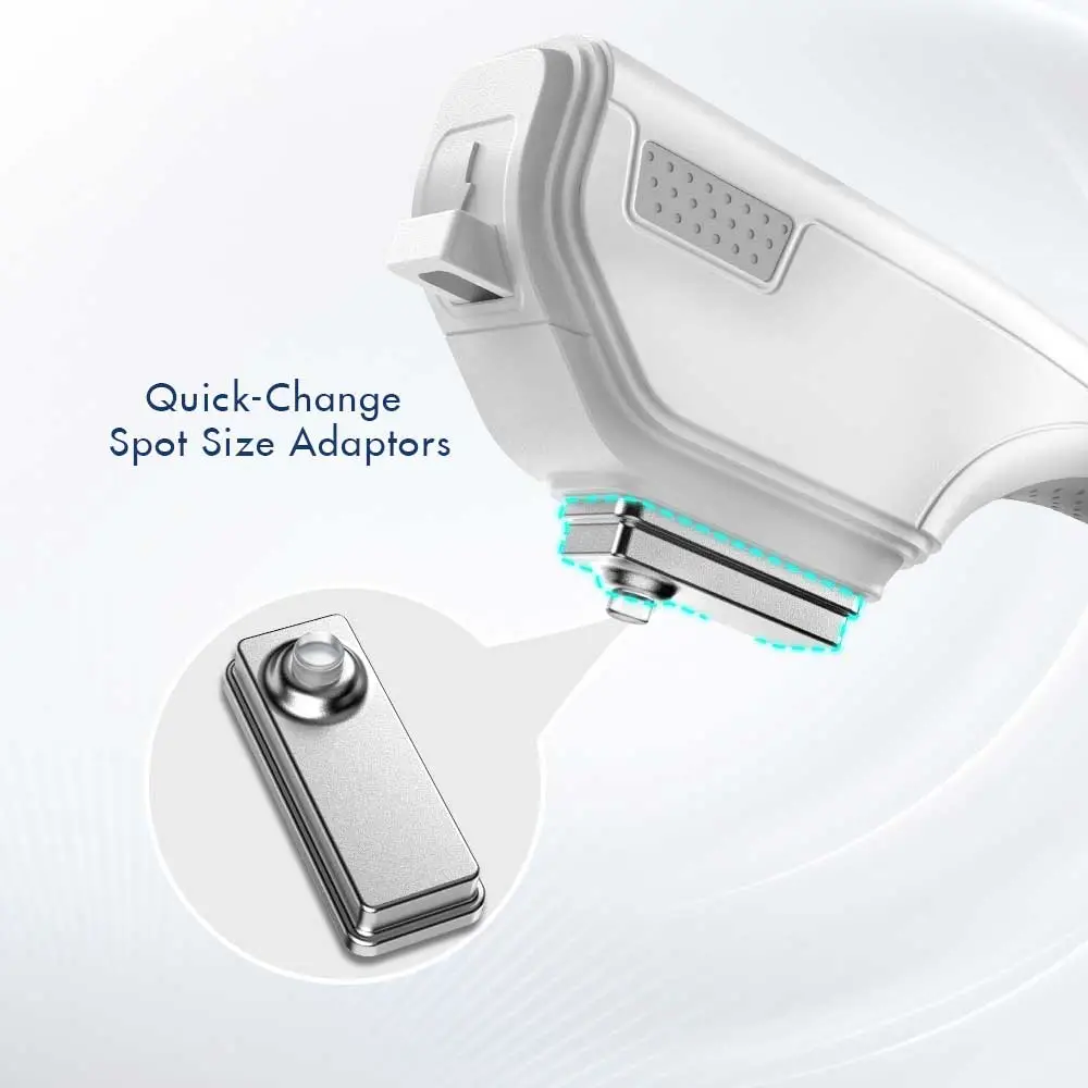 The Ipl With Filters Machine is designed for versatility and convenience, with quick-change spot size adaptors that allow for easy adjustment of spot sizes. These adaptors utilize magnetic gold pieces, ensuring comfortable treatment of both small and highly contoured areas.